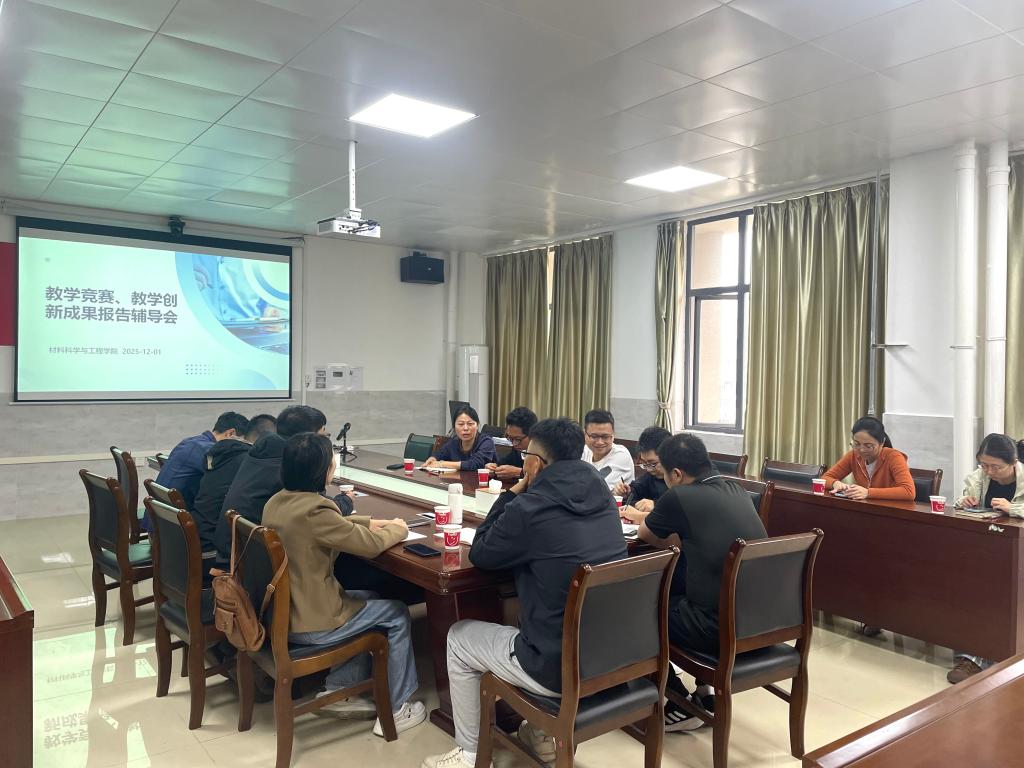 为深入贯彻落实立德树人根本任务,深化教育教学改革,提升教师教学创新能力与竞赛实战水平,2025年12月1日上午材料学院组织教学竞赛与教学创新成果报告辅导会。会议由副院长史博主持,学院骨干教师参加会议。