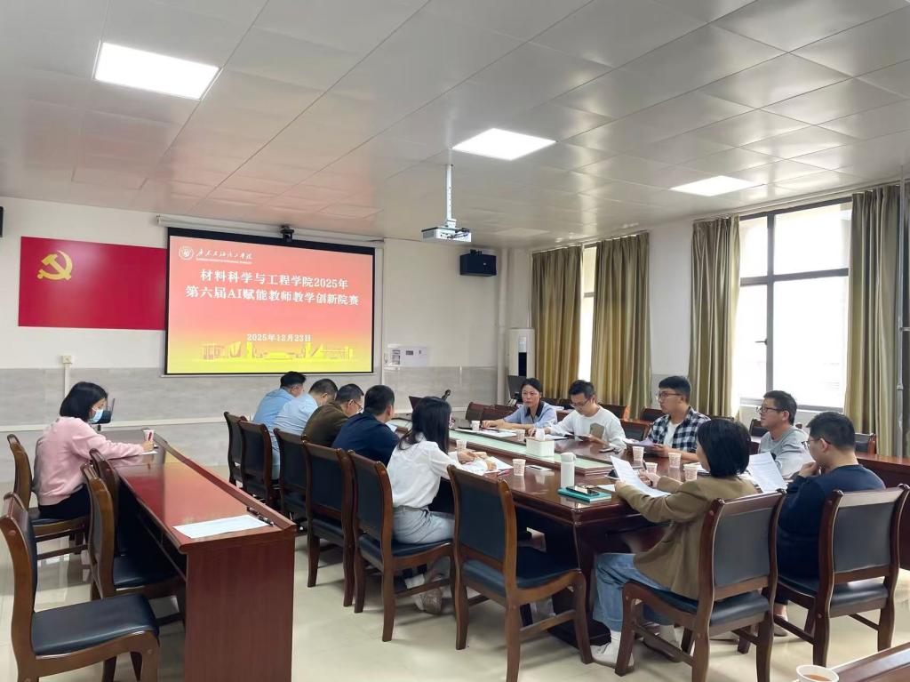 为深化AI技术与教育教学的深度融合,赋能教师教学创新能力提升,12月23日下午,材料学院在A414会议室举办第六届AI赋能教师教学创新院赛。本次院赛由副院长史博、督导组组长班建峰、成员李瑞雪和唐敏锋担任评委,全院教师代表观摩学习。