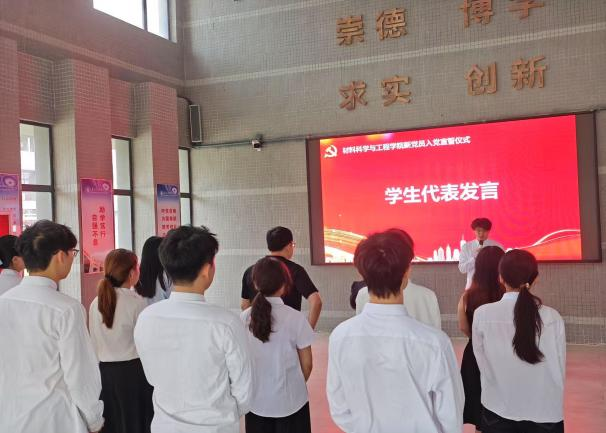 6月13日,材料科学与工程学院党委在学院二楼大厅举行了一场庄严而隆重的新党员入党宣誓仪式。学院党委正处级组织员李志娟、党委副书记冯晓、学生支部书记游立雪老师和王宁宁老师及全体新党员共同见证了这一神圣时刻。此次活动以“铭记誓言担使命,砥砺初心启新程”为主题,通过庄严的宣誓仪式,引导新党员深刻领悟入党誓词的政治内涵,强化党性修养,激发使命担当。