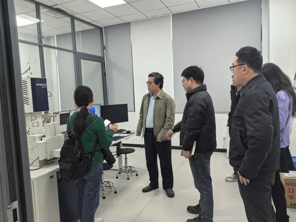 王俊刚代表校分析测试中心(筹)对我校一行表示热烈欢迎,并详细介绍了中心的发展历程、定位特色以及在支撑学校“申博改大”和服务地方产业中的成功经验。双方围绕大型仪器开放共享的激励机制、测试检测标准方法的开发,以及如何高效对接区域中小型企业的技术需求等议题进行了深入探讨。会后,调研组在相关技术人员的陪同下实地参观了新建的分析测试中心大楼及透射电镜、场发射电镜、电子顺磁共振波谱仪等大仪设备实验室。