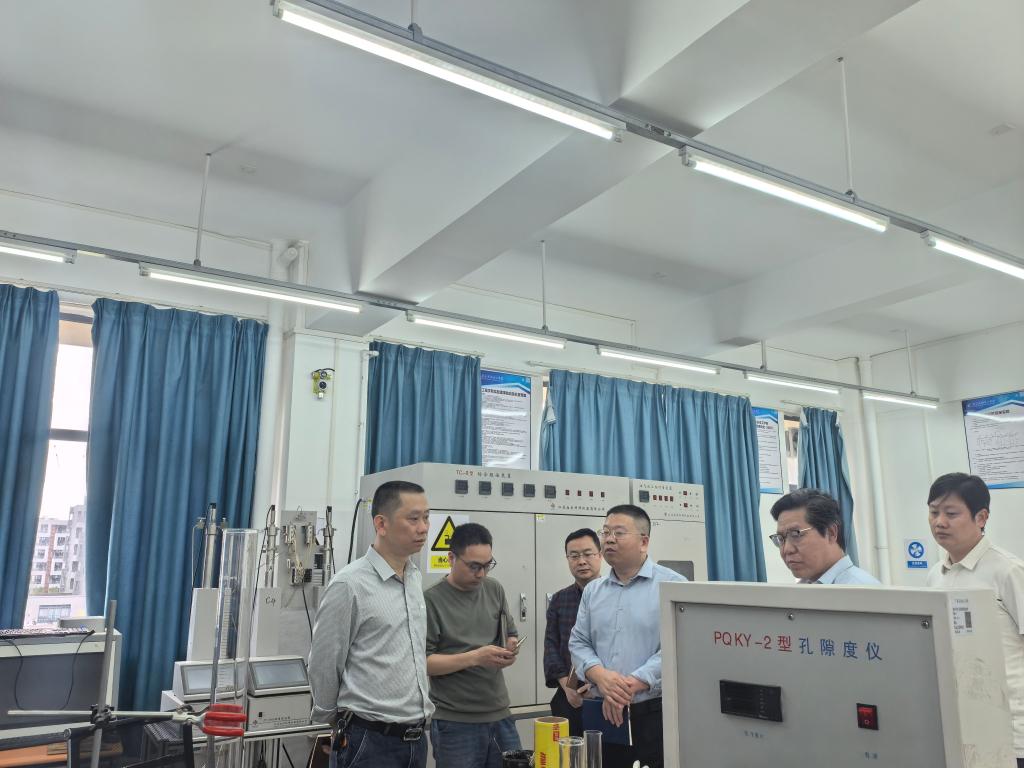 会后,林军一行在陈国民等陪同下,实地参观了石油工程学院大型仪器设备实验室,详细了解学院现有仪器的运行现状及开放共享情况。双方围绕仪器资源互补、避免重复购置、提升测试服务质量等方面进行了现场交流。