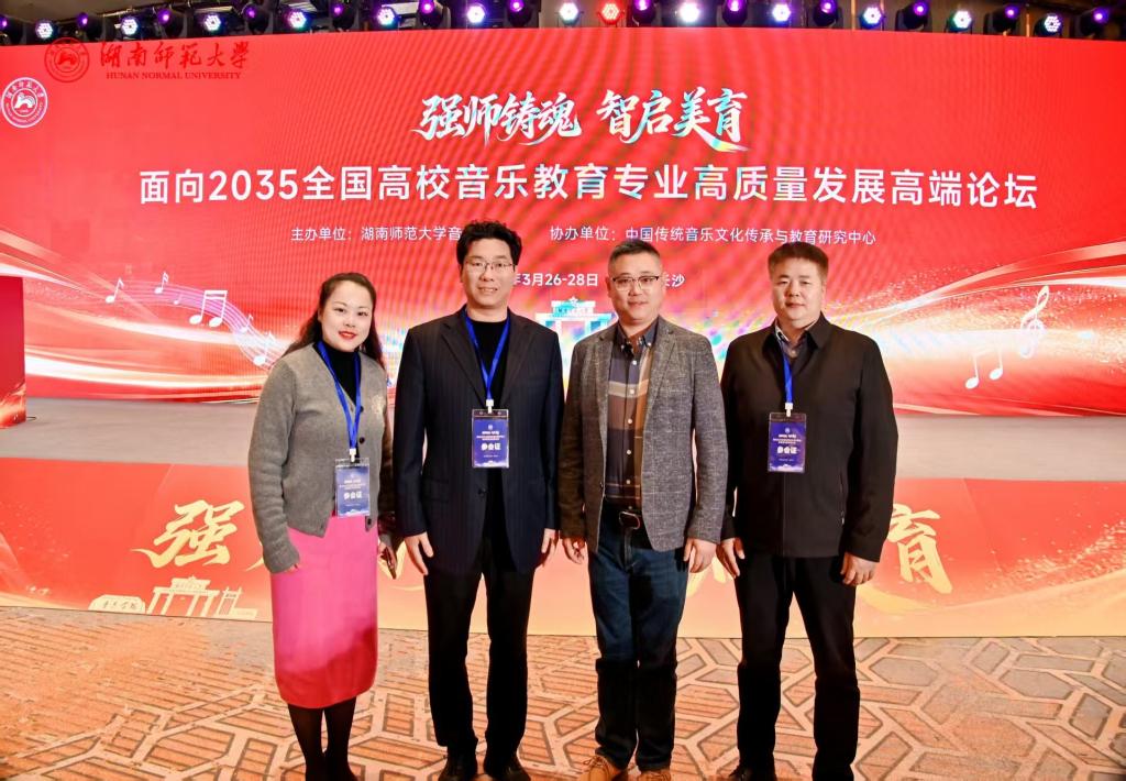 3月26日至27日,“面向2035全国高校音乐教育专业高质量发展高端论坛”在湖南长沙举行。论坛由湖南师范大学音乐学院主办、中国传统音乐文化传承与教育研究中心协办,以“强师铸魂·智启美育”为主题,汇聚全国数十所高校音乐教育领域顶尖学者、院长及教学名师,共280余名教师参会,探讨2035年音乐教师教育改革与发展路径。艺术学院副院长蒋快安、胡洋,音乐学教研室主任陈广林、音乐表演教研室主任赵婷参会。