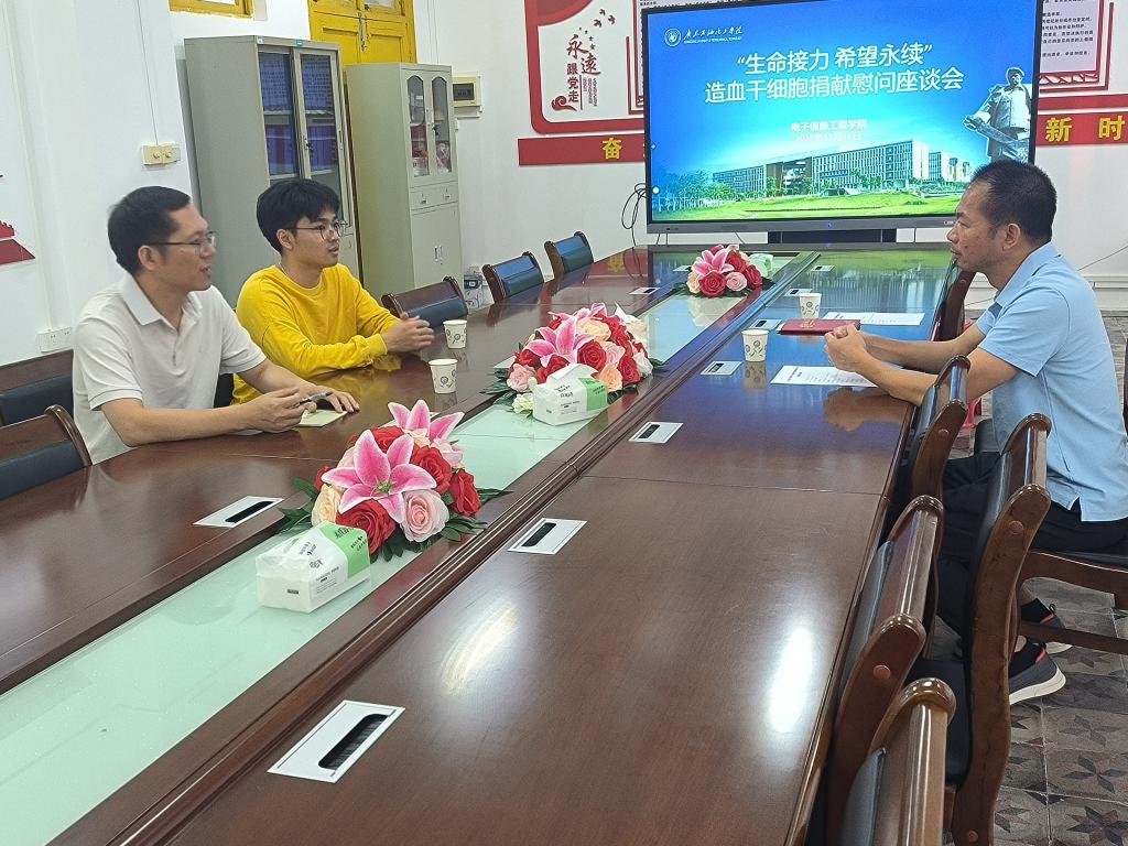 11月16日,电子信息工程学院在中专楼217会议室举行了“生命接力 希望永续”造血干细胞捐献慰问座谈会。学院领导、班主任与相关老师出席会议,对成功完成造血干细胞捐献的张锡彬同学表示亲切慰问,并对其大爱善举给予高度赞扬。