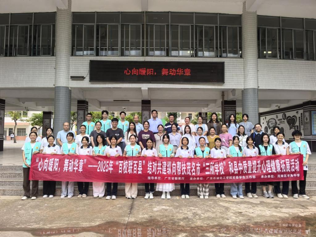 6月11日下午,学校学生工作部联合茂名市教育局依托我校大学生心理发展指导中心西城分中心通过学校“向日葵”朋辈心理陪伴员志愿服务队及“心手相牵”实践团的志愿者们在茂南区羊角中学开展2025年“百校联百县”结对共建纵向帮扶茂名市“三所学校”和县中质量提升心理健康团体拓展活动,我校大学生心理发展指导中心西城分中心教师代表、茂南区各校心理教师代表、羊角中学部分师生、学生志愿者共300多人参加了本次活动。
