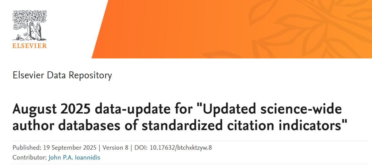 据悉,全球前2%顶尖科学家榜单被国际学界公认为“大规模科学家影响力标准”,分为“终身科学影响力榜单”和“年度科学影响力榜单”。榜单基于Scopus数据库,统计论文涵盖SSCI、SCI、EI期刊及EI会议论文等,通过对论文被引数、H指数、合著者修正HM因子、单独或第一作者的文章引用数等多项指标进行评估,从全球近700万名科学家中遴选出世界排名前2%的科学家,涵盖22个领域和174个子领域。其中,“终身科学影响力”关注科研人员整个学术生涯迄今的综合表现,“年度科学影响力”则聚焦科研人员上一年度的学术影响力,入选榜单意味着该学者在其研究领域获得国际高度认可。