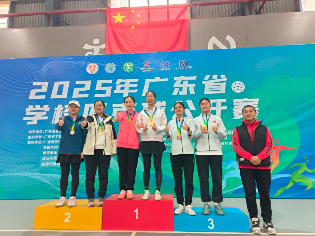 12月26日至28日,由广东省教育厅指导的2025年广东省学校匹克球公开赛在清远英德市举行,来自全省80多所大、中、小学的1000多名教职工运动员参赛。经过激烈角逐,我校教工队何妍、郑少惠在大学本科乙组女双项目中摘得桂冠,莫上崇在本科甲组男单项目中荣获第六名,范芳、李米环在本科丙组女双项目中荣获第七名。
