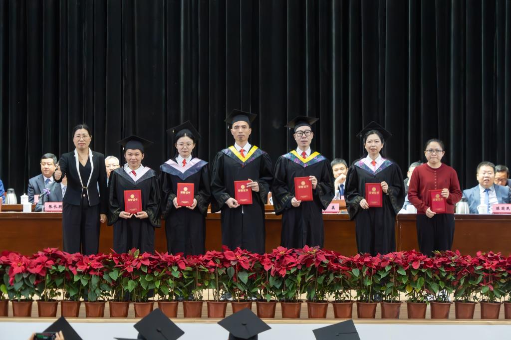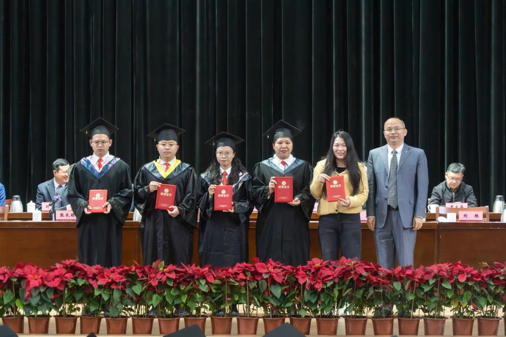 万勇为学士学位获得者代表颁发学士学位证书,并合影留念