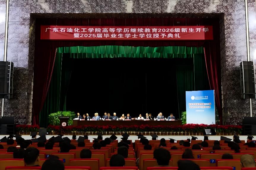 3月14日上午,广东石油化工学院高等学历继续教育2026级新生开学暨2025届毕业生学士学位授予典礼在科技会堂举行。学校党委常委、副校长、学位评定委员会副主席万勇出席典礼。相关部门主要负责人、二级学院主要负责人、教师代表、2026级新生代表、优秀毕业生和优秀班干部代表及2025届获授学士学位毕业生代表参加典礼。