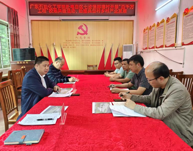12月11日下午,广东石油化工学院赴电白区七迳镇那增村、官屋地村开展“百千万工程”校地结对共建活动。学校华南石化创新中心负责人、七迳镇人民政府党政办主任李贺成、那增村和官屋地村全体村干部参加共建活动。