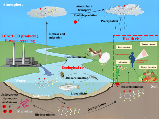 氟化液晶单体(FLCMs)是广泛应用于液晶显示器的一类新污染物。随着全球电子设备更新换代,FLCMs被不断释放到环境中,对生态系统和人类健康构成潜在威胁,近年来引发全球广泛关注。本综述系统梳理了关于FLCMs的现有知识,重点聚焦于其物理化学性质、环境分布、人体暴露、转化行为及消除技术。研究发现,尽管计算预测显示大多数已知的FLCMs具有持久性和生物累积性,但实验测量值与预测值之间存在显著差异,尤其在土壤和水体中的持久性数据匮乏。部分FLCMs表现出大气持久性、生物累积潜力以及多种毒性(如急性毒性、肝毒性、内分泌干扰效应等)。本文提出了12种需要优先关注的FLCMs清单。研究发现,膳食摄入是普通人群暴露FLCMs的主要途径,婴幼儿通过母乳或配方奶粉的暴露水平高于成人。在电子废物拆解工人中,通过灰尘摄入等途径的暴露水平显著更高,存在职业暴露风险。FLCMs可发生光转化和生物转化,可能产生具有相当或更高毒性的转化产物。目前关于FLCMs的消除技术研究仍很有限,开发高效、环境友好的修复技术至关重要。本综述强调了氟化液晶单体作为一类潜在持久性有机污染物的环境关注必要性,为后续相关研究、环境管理和风险防控提供了重要的科学依据和方向指引。