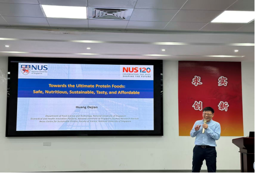 讲座中,黄德建教授聚焦“推动农业食品绿色可持续发展”与“通过食品干预应对慢性病、实现健康老龄化”全球性议题,系统介绍了其团队在可持续植物蛋白领域的最新研究成果。相关研究不仅为应对全球食品与健康挑战提供了创新思路,也为植物蛋白的产业化应用与绿色发展指明了方向。