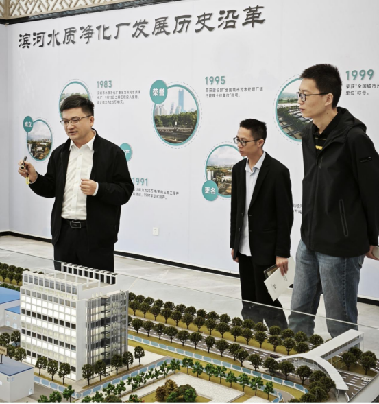 12月18日,调研团队到访深圳市环境水务集团有限公司,听取运营管理中心熊晔经理介绍深圳市智慧水务建设的核心思路、技术架构与应用成效,并前往集团滨河水质净化厂,实地参观了该厂扩建工程的建设进展及AOA污水处理工艺的运行情况,详细了解了企业在污水处理领域的技术创新与实践应用。双方还就产学研合作、实习岗位供给、毕业生就业合作等方面进行了深入洽谈,达成多项合作意向。