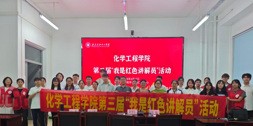 2026年4月17日晚,化学工程学院第三届“我是红色讲解员”活动在热烈的掌声中圆满收官。活动以“讲好党史故事,传承红色精神”为主线,由学院学生党建工作中心承办。化工实验实训中心党支部书记林存辉、能工学生党支部书记黄丹颖、学院专职辅导员高越、化工研究生党支部书记陈杰应邀担任评委,与学子共赴一场跨越百年的“红色对话”。