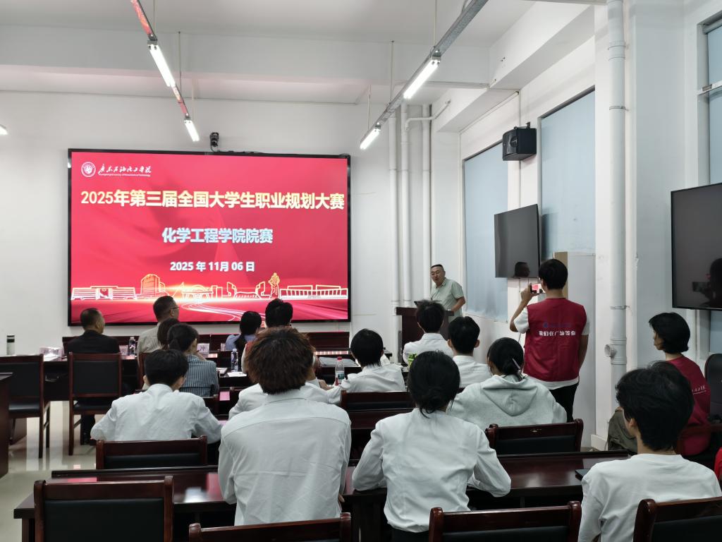 11月6日晚,化学工程学院于西城校区化工C104成功举办第三届全国大学生职业规划大赛院级选拔赛。学院党委副书记纪玉刚、创新创业学院副院长孙健、石油化工系主任杨冲、化工实验与实训中心副主任林存辉以及学院辅导员黄丹颖出席本次大赛。