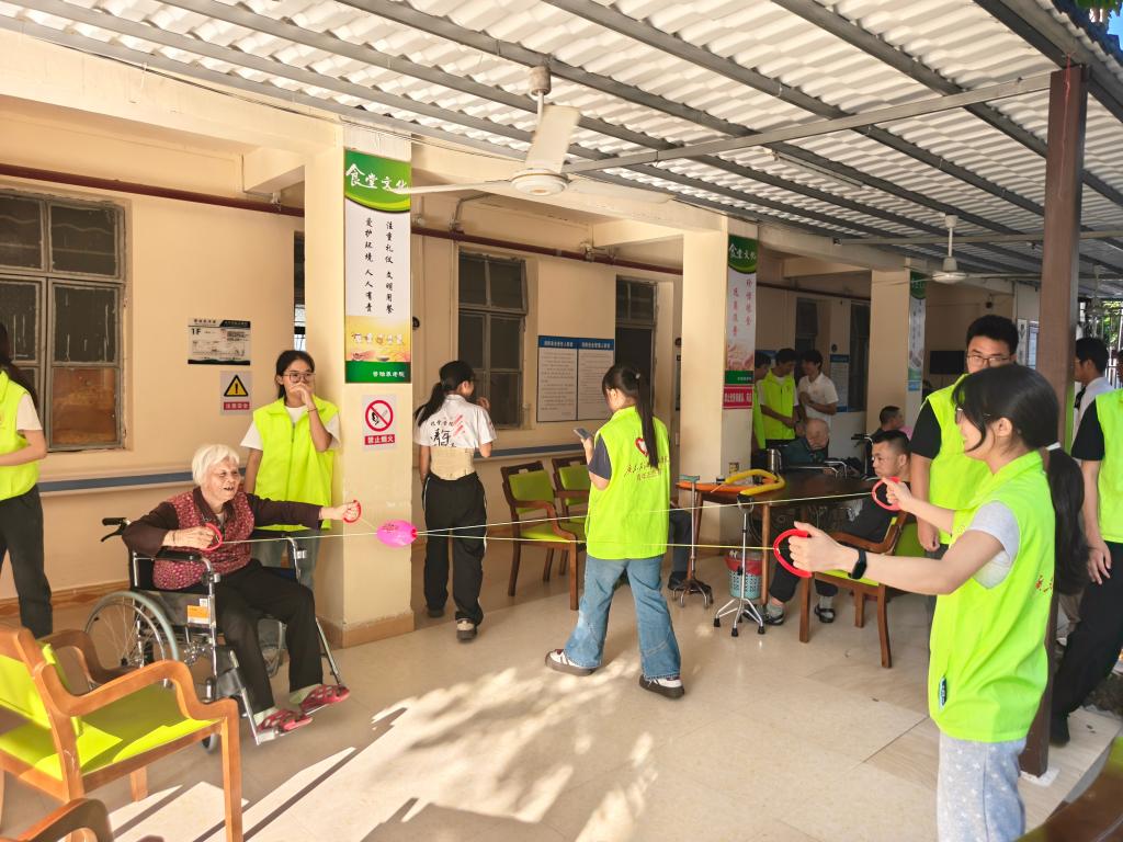 活动现场,志愿者通过诗歌朗诵《岁岁重阳今有阳》、经典歌曲《夕阳红》等节目,与老人互动,唤起美好回忆。弘扬醒狮队的精彩表演将气氛推向高潮,灵动的舞狮引得老人们开怀大笑。在手工香囊制作、游戏及合影等互动环节中,志愿者陪伴老人度过欢乐时光。活动尾声,志愿者主动打扫院落、擦拭桌椅,并为行动不便的老人喂饭、整理衣物,用细致服务传递温暖。