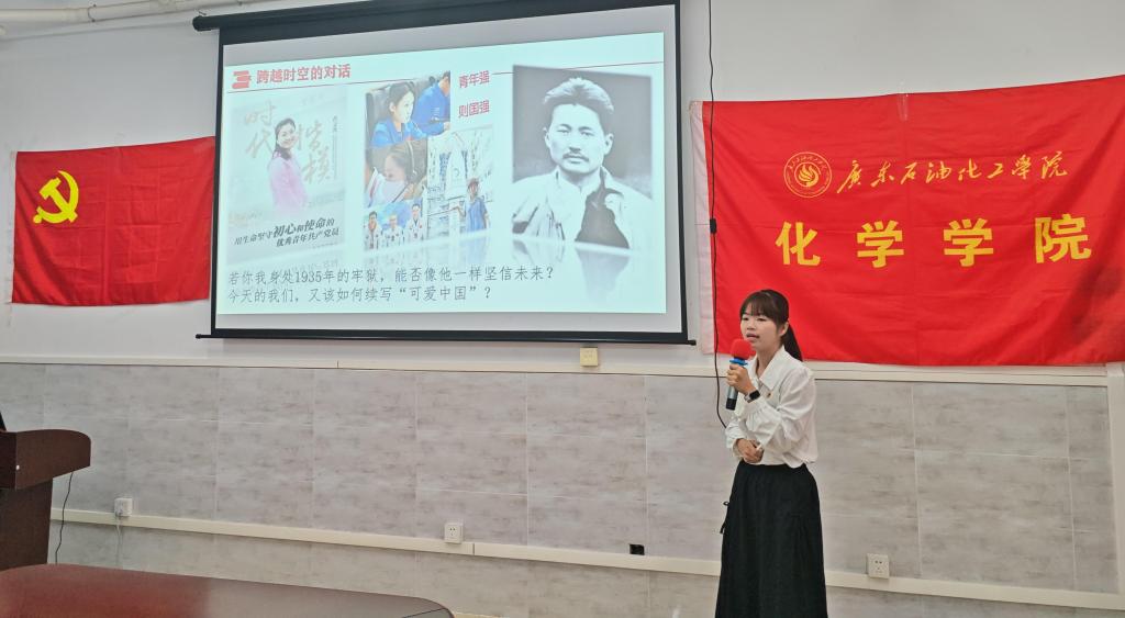 4月17日晚上,化学学院学生党建工作中心开展主题为“赓续红色基因,争做时代新青年”的“我是红色讲解员”大赛,学院组织员黄秀雯,辅导员伍敏红、程辉成、梁嘉丽、何超宇、梁睿智,各学生机构主要学生干部以及学生代表等40余人参加了此次活动。