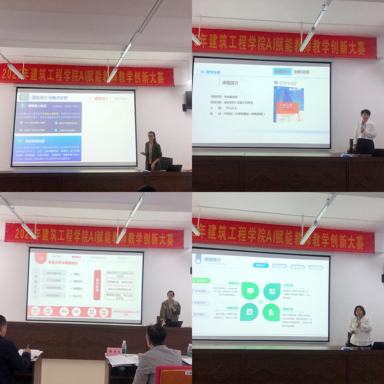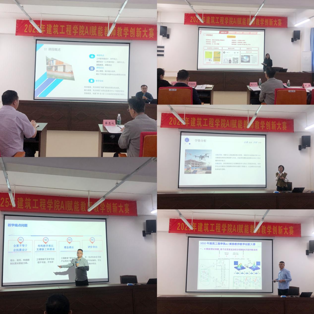 2025年建筑工程学院AI赋能教师教学创新大赛圆满落幕为进一步发挥“以赛促教、以赛促学、以赛促改、以赛促建”的作用,持续培育和激发教师教学创新力,全面推进新工科建设,深化教育教学改革,2025年12月23日,建筑工程学院在建工楼会议室A514成功举办了AI赋能教师教学创新大赛。本次大赛组织了院领导、教研室(系)主任、教学督导及资深教授担任评委,确保了赛事评审的专业性与公正性。