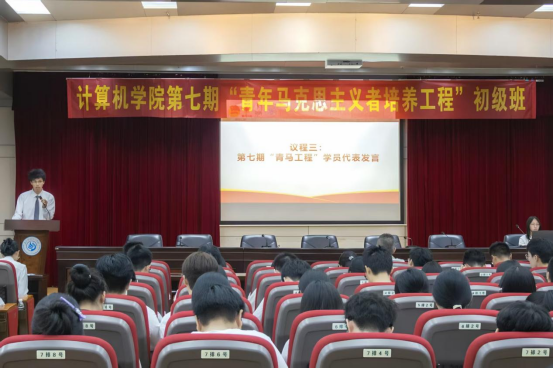 第七期学员代表,物联网25-1团支部刘家昌同学分享了自己对“青马工程”的理解和认识,并表示将以此次青马班为新的起点,不断砥砺前行,在学习中成长,在实践中进步,时刻牢记自己的使命和责任,以实际行动践行马克思主义,做有理想、有本领、有担当的新时代青年。