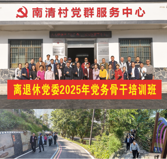 11月26日,离退休党委组织党务骨干到电白区黄岭镇南清村开展党务骨干培训班之实践型党课,重点围绕习近平经济思想进行了专题学习研讨,近距离感受“绿水青山”向“金山银山”转化的生动实践。离退休党委委员、党支部委员、特聘党风监督员、党建联络员、社团骨干代表、离退休部党员36人参加了学习研讨。