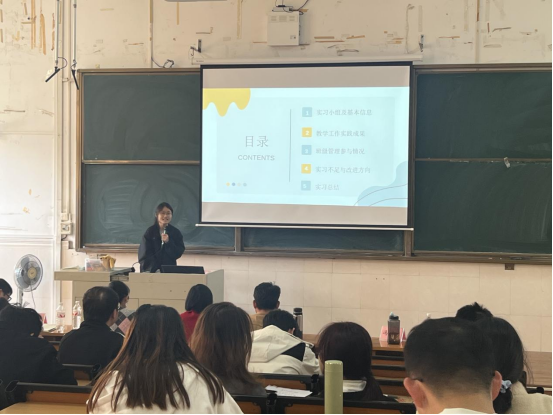 然后,梁燕老师代表实习指导老师进行发言。她充分肯定了同学们在实习中积极认真的态度和取得的累累硕果,祝贺同学们实现了从学生到一名合格老师的蜕变,圆满完成实习任务。希望同学们将在实习中积累的经验运用到未来的教学工作中去,早日找到自己心仪的工作,在未来的工作中不断成长,取得更加优异的成绩。