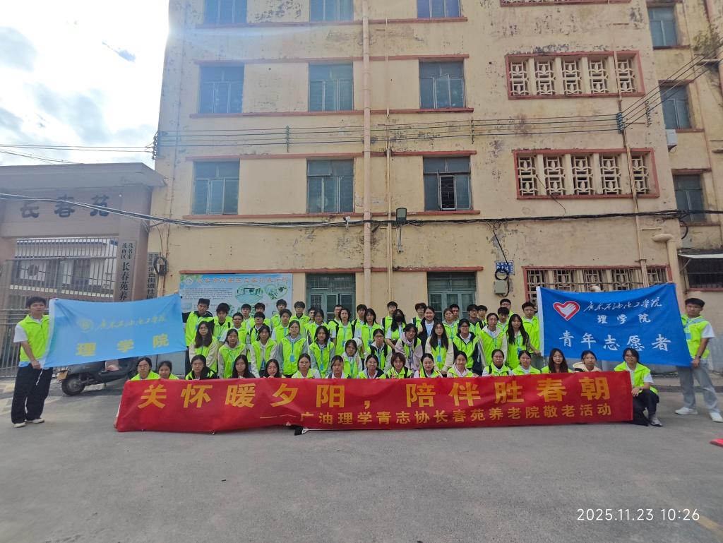 立冬时节,为弘扬尊老爱老传统美德,广东石油化工学院理学院青志协于11月23日赴长春苑养老院,开展“关怀暖夕阳,陪伴胜春朝”主题志愿活动,25级新生也首次参与其中。