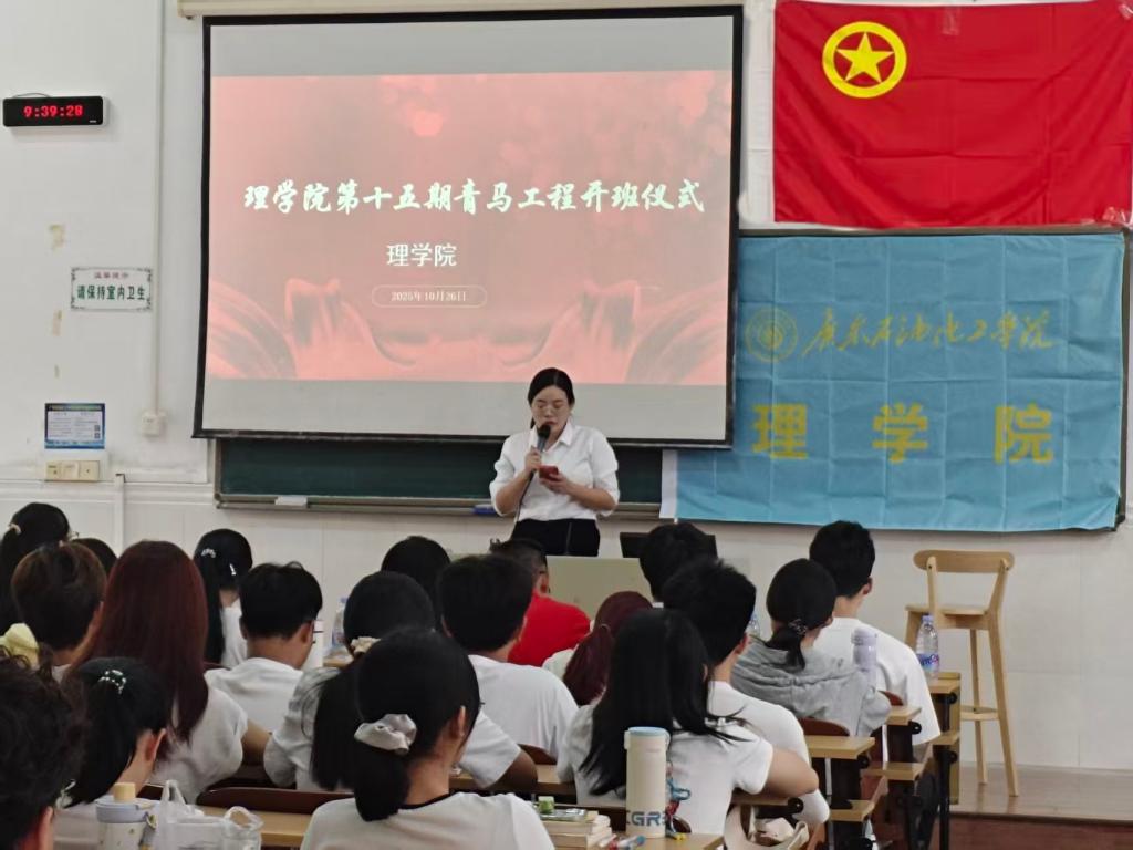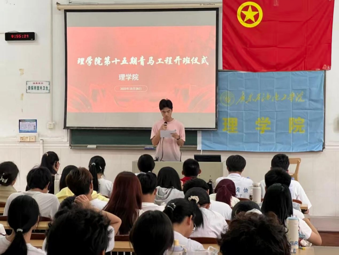 10月26日上午9:30,理学院在官渡校区二教B205教室举行广东石油化工学院理学院第十五期“青年马克思主义者培养工程”学习班开班仪式。学院党委副书记符清桓、团委书记庞伟连出席,六大机构主席团、青马全体学员参会。