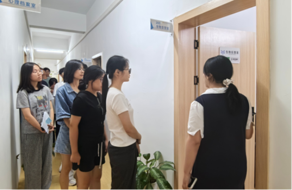 活动中段,全体心委在钟书文老师的带领下前往学校心理中心参观学习,心理中心孙艾雯老师详细介绍了中心的功能分区、服务内容及预约流程,手把手指导心委们如何精准链接专业心理资源,让“守护工具”更清晰、更实用。