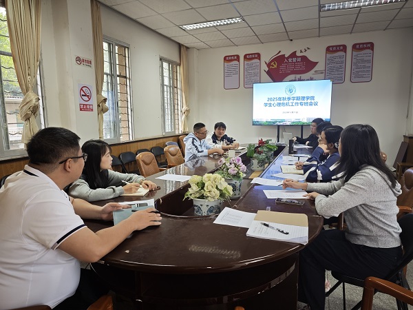 12 月 11 日上午,理学院于学院 201 会议室召开 2025 年秋季学期学生心理危机工作专班会议,全体辅导员参会。会上,心理辅导员钟书文传达学校心理专题会议精神,领学心理危机相关文件,并结合四六级、考研及期末考试临近的节点,提醒全体辅导员协同班主任强化心理排查,深入宿舍走访,规范做好工作记录。学院党委副书记符清桓强调,需落实 “一生一策” 动态管理机制,加强休学学生关怀跟进,严格执行危机干预工作细则。与会人员围绕我院重点高关怀学生的家校协同、预警响应及干预管理等工作经验展开交流。本次会议有效提升了学工队伍心理危机干预处置能力,为筑牢校园安全防线提供了坚实保障。