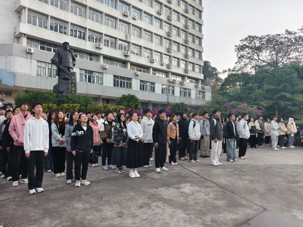 十二月晨光洒满校园,国旗广场庄严肃穆。理学院全体师生齐聚于此,隆重举行升国旗仪式,以赤诚之心致敬祖国,以奋进之姿砥砺前行。活动由辅导员周洁容主持。