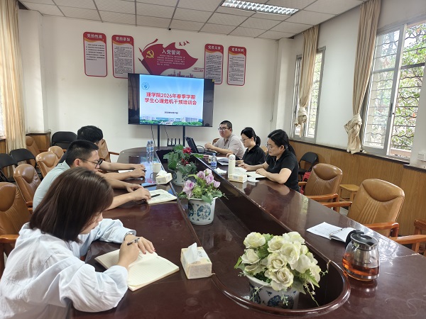 2026年3月31日上午,理学院在201会议室召开学工例会暨2026年春季学期学生心理危机干预专项培训,由学院党委副书记符清桓主持。会上,符清桓强调学生心理工作重要性,指出春季是心理问题高发期,要求抓实抓细心理育人工作,带领辅导员研判各年级高关怀学生名单,细化帮扶方案,并结合案例开展专项培训,提升辅导员危机处置能力。同时,他强调毕业年级做好考研、就业等工作,其他年级抓实日常管理,辅导员精准把握学生动态,做好特殊群体帮扶。