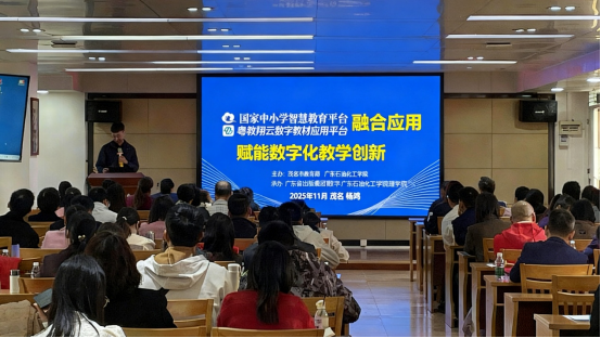 2025年11月23日,由广东石油化工学院理学院联合茂名市教育局主办、广东省出版集团数字出版有限公司协办的粤教翔云数字教材应用平台专项培训顺利举行。本次培训聚焦县域基础教育“三所学校”和县中质量提升需求,通过实操教学与案例分享,助力教师熟练运用平台智能工具,推动人工智能与课堂教学深度融合。