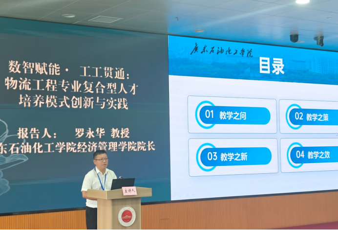 广东石油化工学院物流工程系申报的成果《数智赋能·工工贯通:物流工程专业复合型人才培养模式创新与实践》荣获优秀教学成果特等奖,系本次评选的唯一特等奖项目,成果完成人为罗永华、张大为、杨海钰等物流工程专业教学团队全体成员。经管学院罗永华院长在会上做了主旨报告,介绍了教学成果内容:“数智赋能·工工贯通”成果以物流产业数字化转型为背景,聚焦传统教学体系与行业需求脱节、数字技术应用不足、复合能力培养薄弱等教学问题,系统构建了“教学重构—实践提升—跨界融合”三位一体的物流工程人才培养新模式。该模式依托AI大模型、虚拟仿真、跨学科协同等教学手段,深度融合产教资源,有效提升了学生的工程实践能力与跨界集成素养,使人才培养质量得到显著提升。