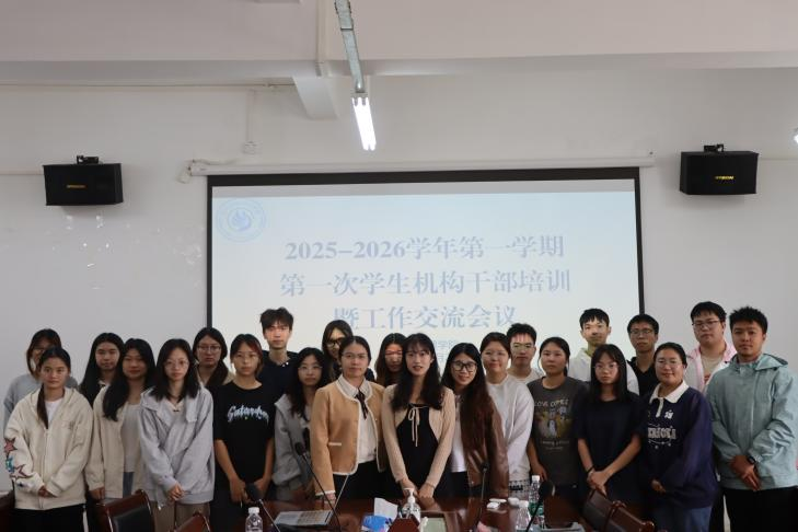 10月22日中午12点,经管学院在经管楼407会议室举行2025-2026学年第一学期第一次机构学生干部培训暨业务交流会议。会议由学院团委负责人林衍君老师主持,辅导员张莹敏、邵威杰、吕春霞出席会议,六大学生机构主席团成员参会。