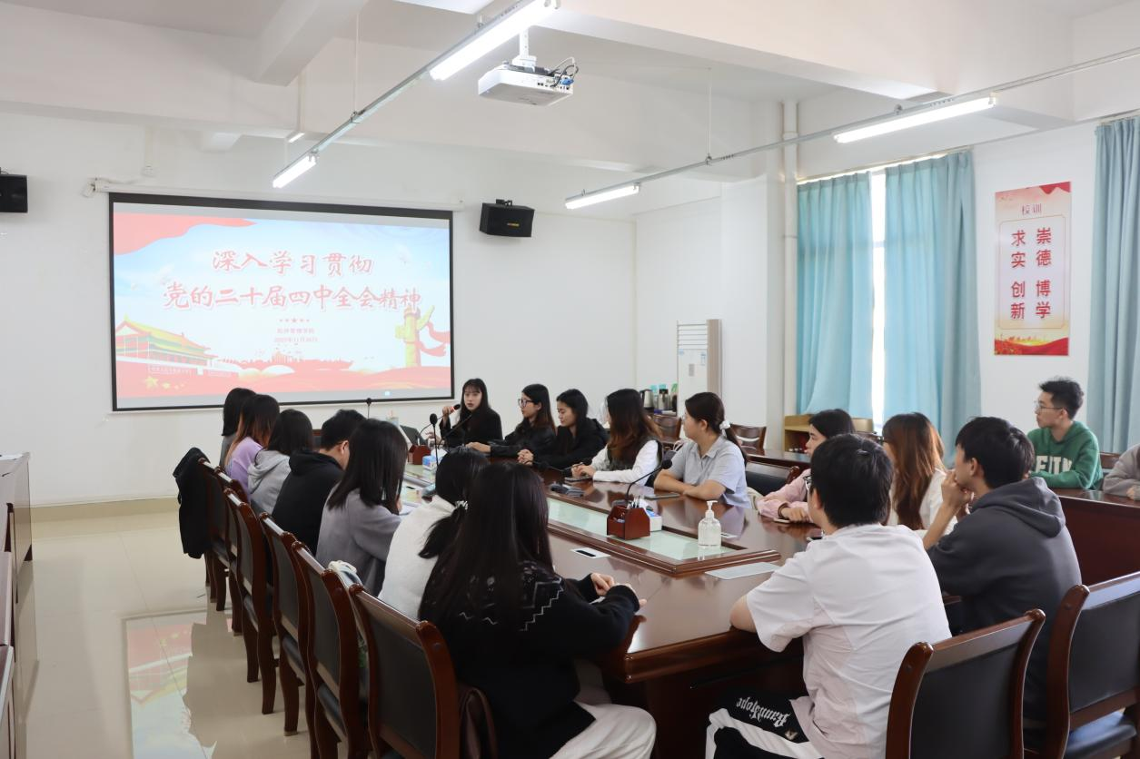 11月26日中午,经管学院在经管楼407会议室组织开展《深入学习贯彻党的二十届四中全会精神》专题学习会,并举行2025-2026学年第一学期第二次学生机构业务交流会议。经管学院团委负责人林衍君、辅导员吕春霞出席会议,六大学生机构主席团成员参会。
