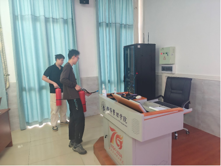 本次活动分为理论培训与实践演练两部分。在消防安全专题教育中,张润舒副院长强调了实验室消防安全的重要性,要求学院师生高度重视实验室消防安全。实验室管理人员李驰垠针对经管学院实验室的风险特点讲解了消防安全须知及消防器材的使用。随后,全体人员开展消防安全应急演练,本次演练以实验室为场景,模拟现代经济大数据中心内的网络机柜因设备故障发生电器着火,实验室内的学生在任课老师的指挥下有序撤离现场并使用干粉灭火器扑灭起火设备。