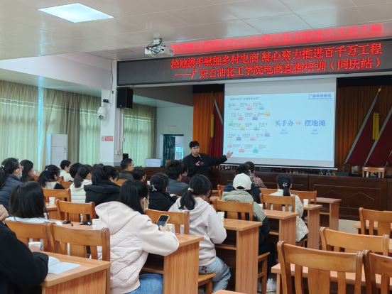 12月26日上午,一场以“校地携手赋能乡村电商 凝心聚力推进‘百县千镇万村高质量发展工程’”为主题的培训在化州市同庆镇展开。培训聚焦同庆镇农副产品产业特色与电商发展实际痛点,为近50名当地电商从业者、创业青年、村干部及“新农人”代表量身定制课程。
