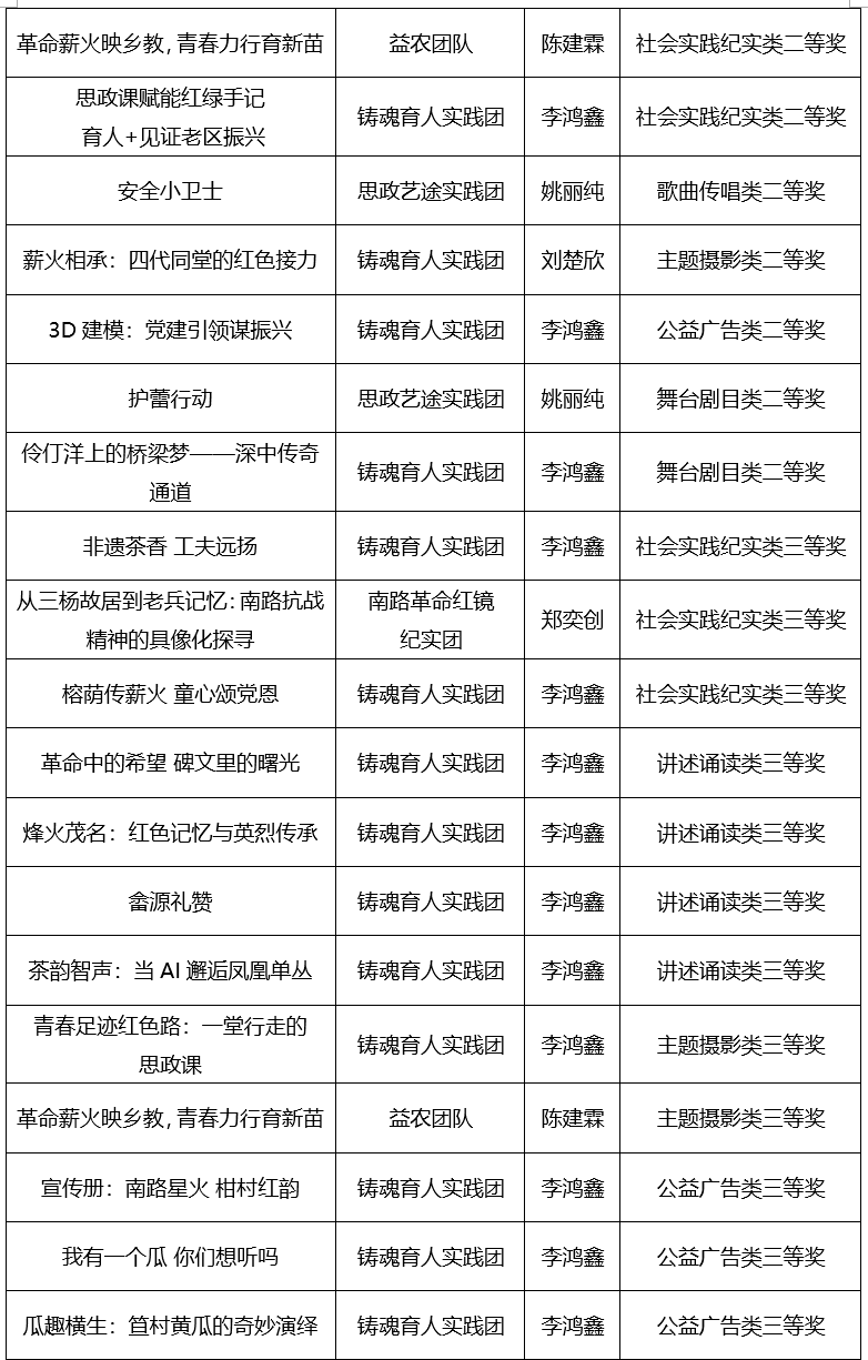 获奖作品涵盖社会实践纪实、诵读、公益广告等多个类别,紧扣“立志·修身·博学·报国”“民族团结进步教育”“网络媒体创新”等时代主题,每一项作品都凝聚着我院师生对家国情怀的深刻领悟、对时代使命的主动担当。