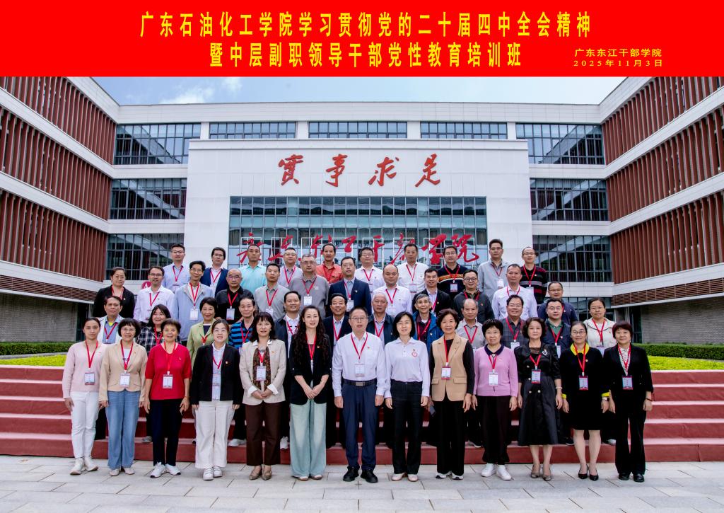 10月27日至31日、11月3日至7日,广东石油化工学院在广东东江干部学院分两期举办学习贯彻党的二十届四中全会精神暨中层副职领导干部党性教育培训班。学校党委副书记、纪委书记李华,党委副书记李为民分别带班开展培训。广东东江干部学院副院长孟美玲出席开班仪式。