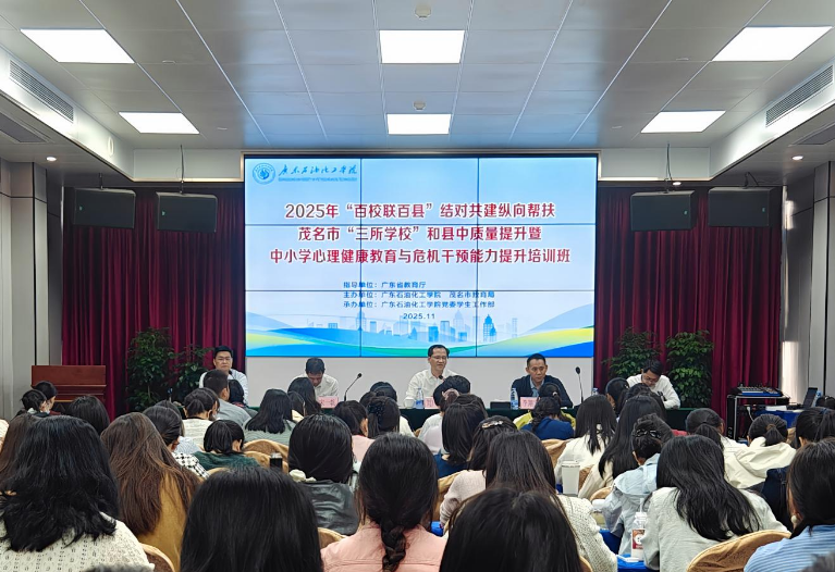 2025年11月6日—7日,广东石油化工学院与茂名市教育局联合主办2025年秋季茂名市中小学生心理危机干预能力提升培训班,来自全市的100多名中小学心理教师参加培训,由广州大学路红教授、岭南师范学院心理中心卢伊颖主任等省内专家学者授课。