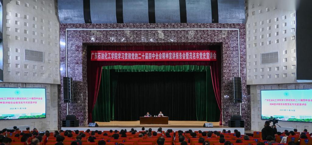 11月18日上午,学校在科技会堂开展学习贯彻党的二十届四中全会精神宣讲报告会暨茂名市党史宣讲会,邀请茂名市党的二十届四中全会精神宣讲团成员、党史宣讲团成员、市委政研室副主任、市委改革办副主任丘丙星作专题报告。会议由党委常委、副校长万勇主持。