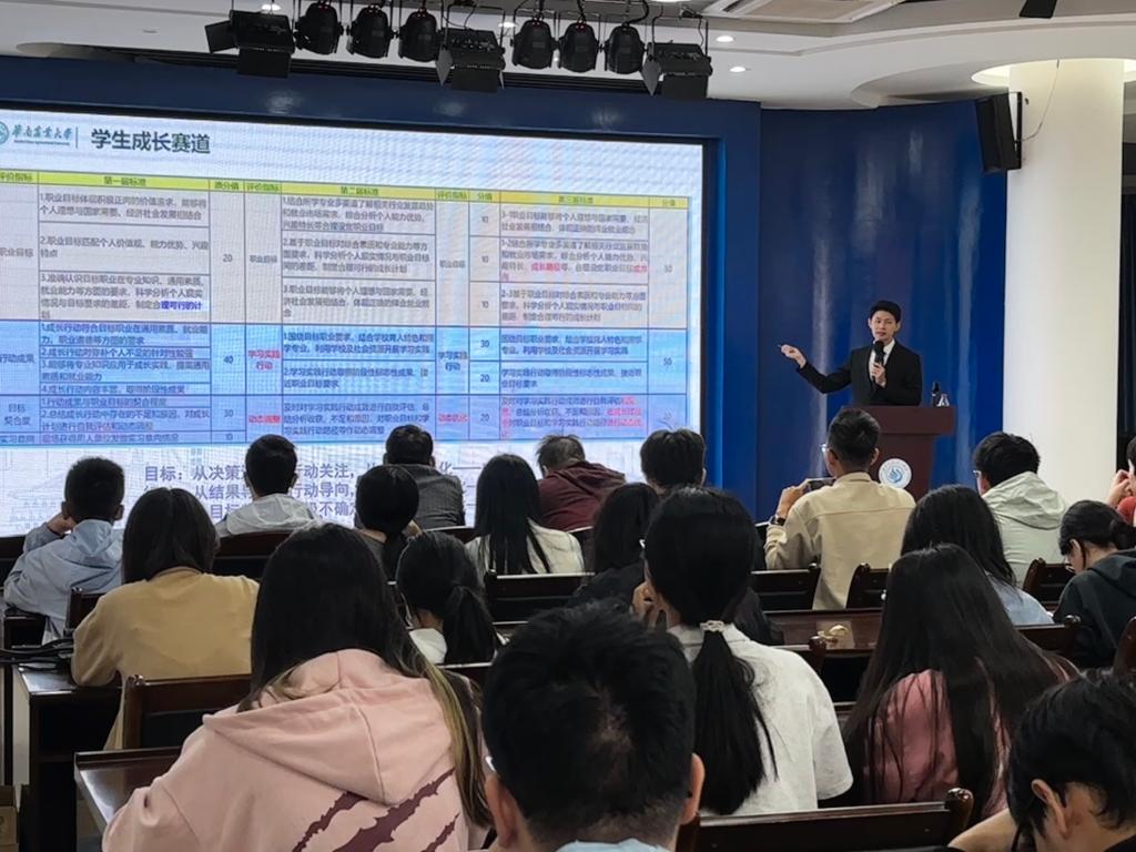 卢小圣围绕“赛事背景、赛事剖析、赛前准备”三方面,精准拆解大赛两大赛道的评审规则与备赛核心要点。他从参赛资料筹备、现场展示等关键环节切入,提供了系统性赛前指导,助力师生精准把握赛事方向、科学规划备赛路径,有效提升职业规划与就业核心竞争力。互动环节中,卢小圣还针对赛事发展前景、参赛资料优化等师生关切问题,进行了详细解答。整场讲座深入浅出、内容精彩,让在场师生均有颇丰收获。