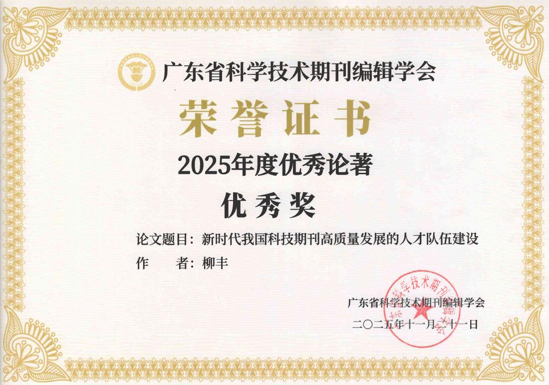 柳丰撰写的论文荣获广东省科技期刊优秀论著奖
