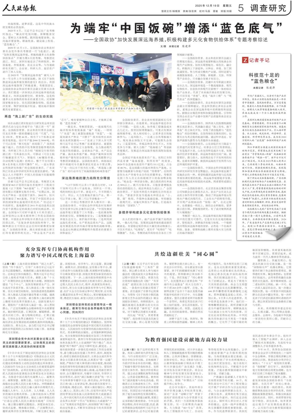 2025年12月19日,《人民政协报》头版刊发全国政协委员、广东石油化工学院校长梁浩教授署名文章《为教育强国建设贡献地方高校力量》,文章重点阐述了其在全国两会上提出的《关于推进高校分类评价,促进地方高校和行业类高校发展的提案》的形成背景、核心思路与实际成效,并结合广油的办学实践,深入展现了地方高校在教育强国建设中的使命担当和改革路径。全文内容如下: