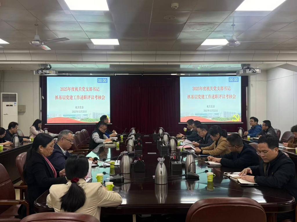 会议首先落实“第一议题”学习要求,集体学习习近平总书记关于机关党的建设重要论述。随后,机关各党支部书记依次述职,全面汇报2025年度党建工作的主要成效、剖析了存在的问题,并提出了后续工作计划。参会人员对各党支部书记抓基层党建工作进行现场评议打分。