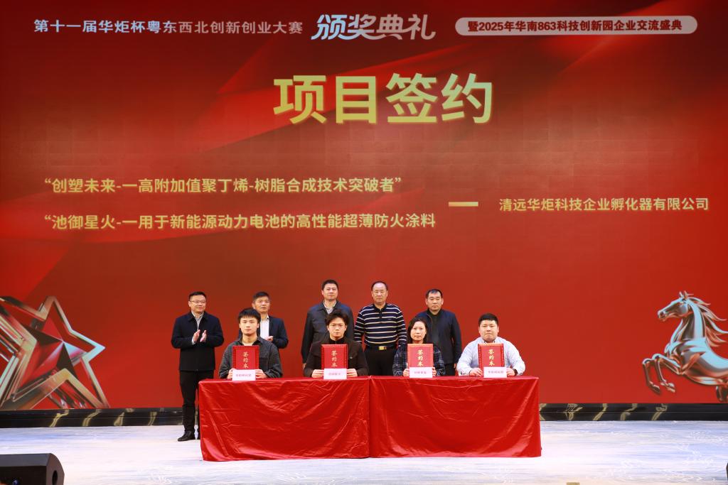 赛后,《创塑未来——高附加值聚丁烯-树脂合成技术突破者》(指导老师:任合刚、吴铛)项目负责人与清远华炬科技企业孵化器有限公司签订合作协议。