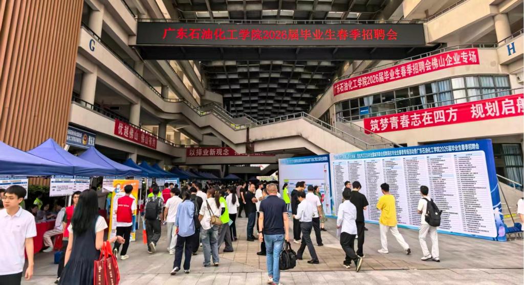 招聘会当天,突降大雨,但浇灭不了招聘企业求贤若渴的热情,求职毕业生积极就业的渴望。本次招聘会线上线下联动举行,吸引广东省石油化工建设集团有限公司、东华能源(茂名)碳纤维有限公司、广东联塑科技实业有限公司等300余家知名企业参会,提供优质岗位1066个,拟招聘人数超10000名,岗位涵盖能源化工、材料、机械、电子、互联网、教育、服务等多个重点行业,精准匹配高校毕业生就业需求。其中,佛山、中山、台山市人社局主动组织近50家优质企业赴校揽才,为毕业生搭建跨区域就业桥梁。活动期间,累计吸引7000余名学生入场求职,现场投递简历2.5万余份,初步达成就业意向1500人,供需对接氛围热烈,招聘成效显著。