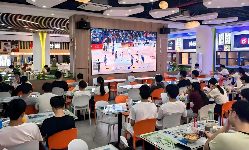 4月25日至26日,广东省男子篮球联赛(粤BA)与广东省五人制足球超级联赛(粤超)激战正酣。作为茂名市文化广电旅游体育局指定的大屏观赛点,学校在西城校区北华食堂二楼设立集中观战点,组织广大师生通过大屏观看赛事直播。