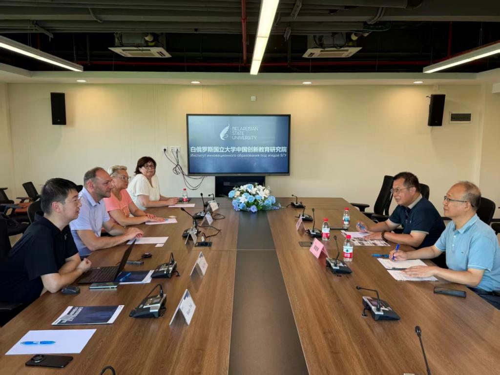调研中,白俄罗斯国立大学第一副校长迪米特里•米罗斯拉夫维奇会见了调研组一行。迪米特里•米罗斯拉夫维奇介绍了白俄罗斯国立大学及白俄罗斯国立大学中国创新教育研究院发展、建设情况。学校对外交流合作部负责人介绍了学校发展历史、办学特色及推动高质量发展情况。双方围绕促进校际交流合作、开展国际化创新人才培养等进行座谈交流,并表示将密切联系,推动在教育、科技、人才方面开展务实交流合作。