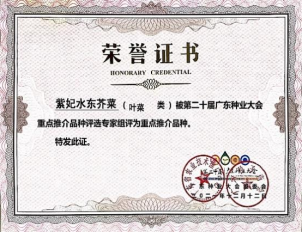 据悉,‘紫妃水东芥’为广东石油化工学院陆光远教授团队最新培育的早熟型高花青素杂交品种,已于2023年通过广东省品种审定委员会初审,其花青素含量可高达5.3g/Kg,是普通绿叶水东芥的48倍,口感脆嫩,可叶用可茎用, 适宜在岭南地区推广种植,具有良好的经济价值和市场前景。