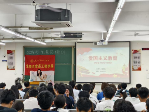 为进一步弘扬爱国主义精神,增强大学生的国家认同感和法治观念,2025年9月27日,生物与食品工程学院组织了全体2025级新生在教学楼J02和J03教室开展爱国主义教育。
